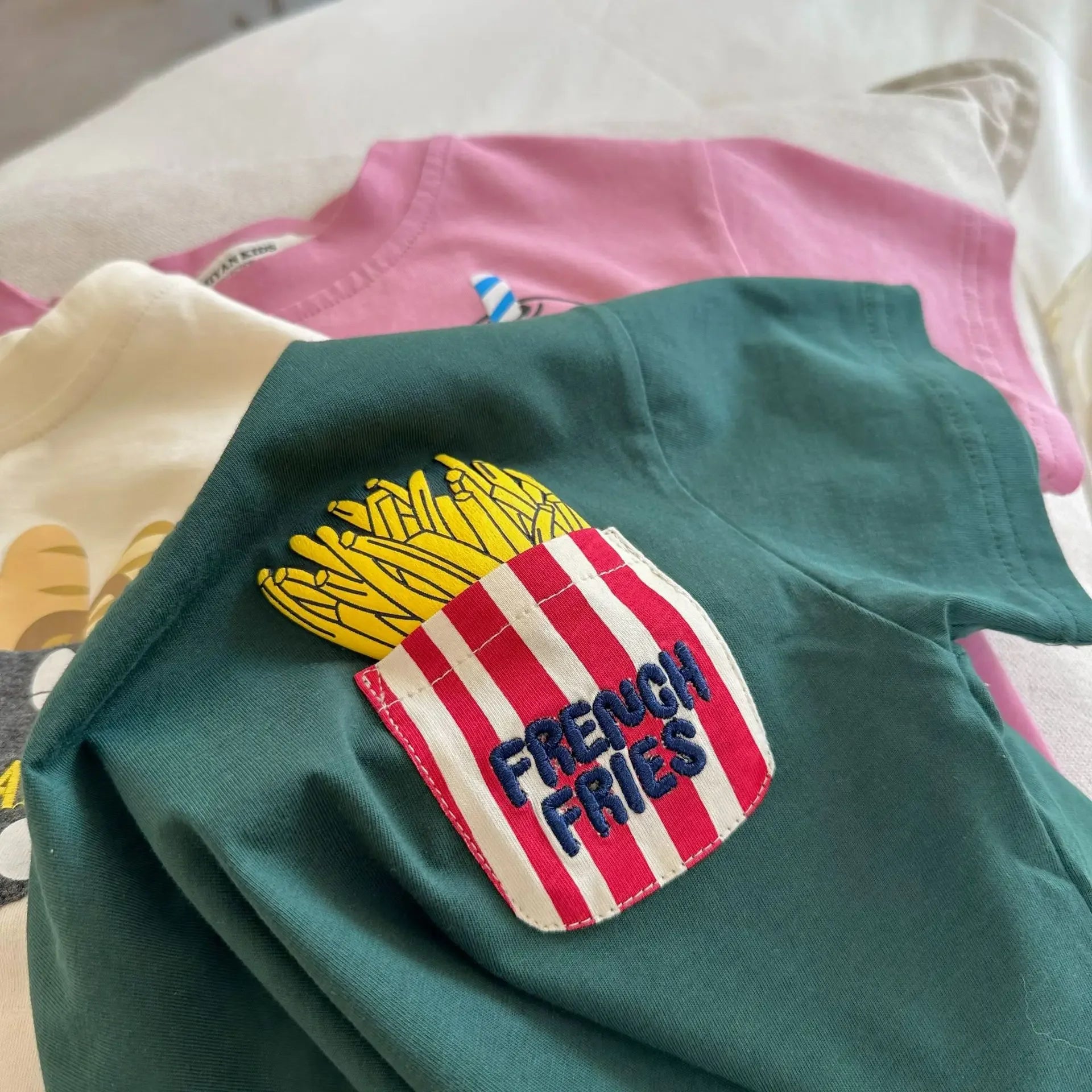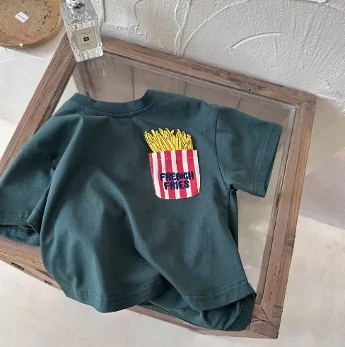 Children's Short Sleeve 2023 Summer New Boys and Girls Cartoon Pocket Short Sleeved T-shirt Baby Cute T-shirt Fashion