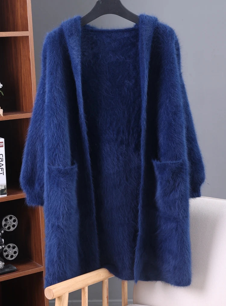 Customizable mink cashmere autumn and winter coat long knit loose coat with hat cardigan thickened sweater S23211
