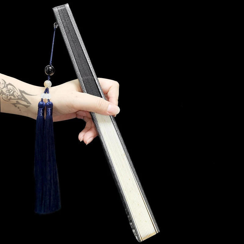 Metal Kung Fu Folding Fan Silk Cloth Fan Surface Tungsten Steel Alloy Self-defense Kung Fu Fan